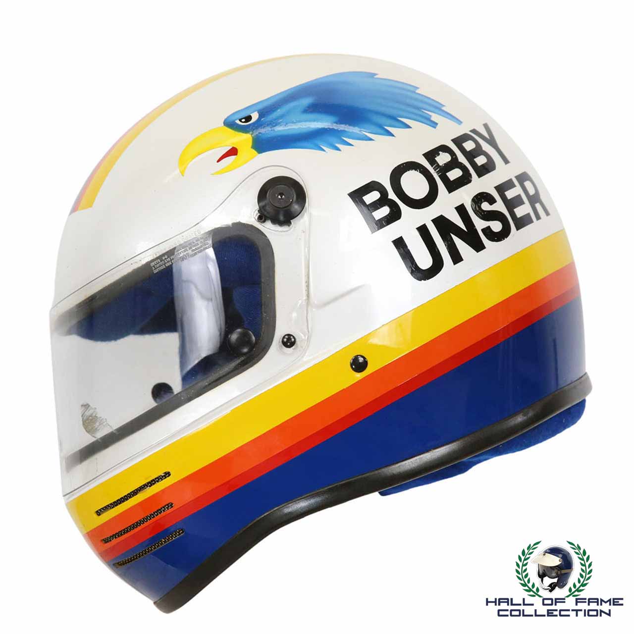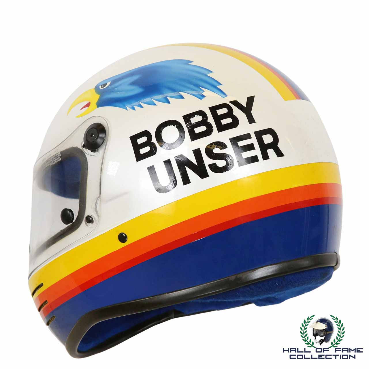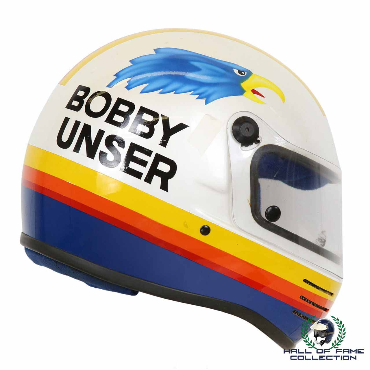 Do not miss this ultra rare opportunity to acquire an original worn Bobby Unser Helmet for your collection today.