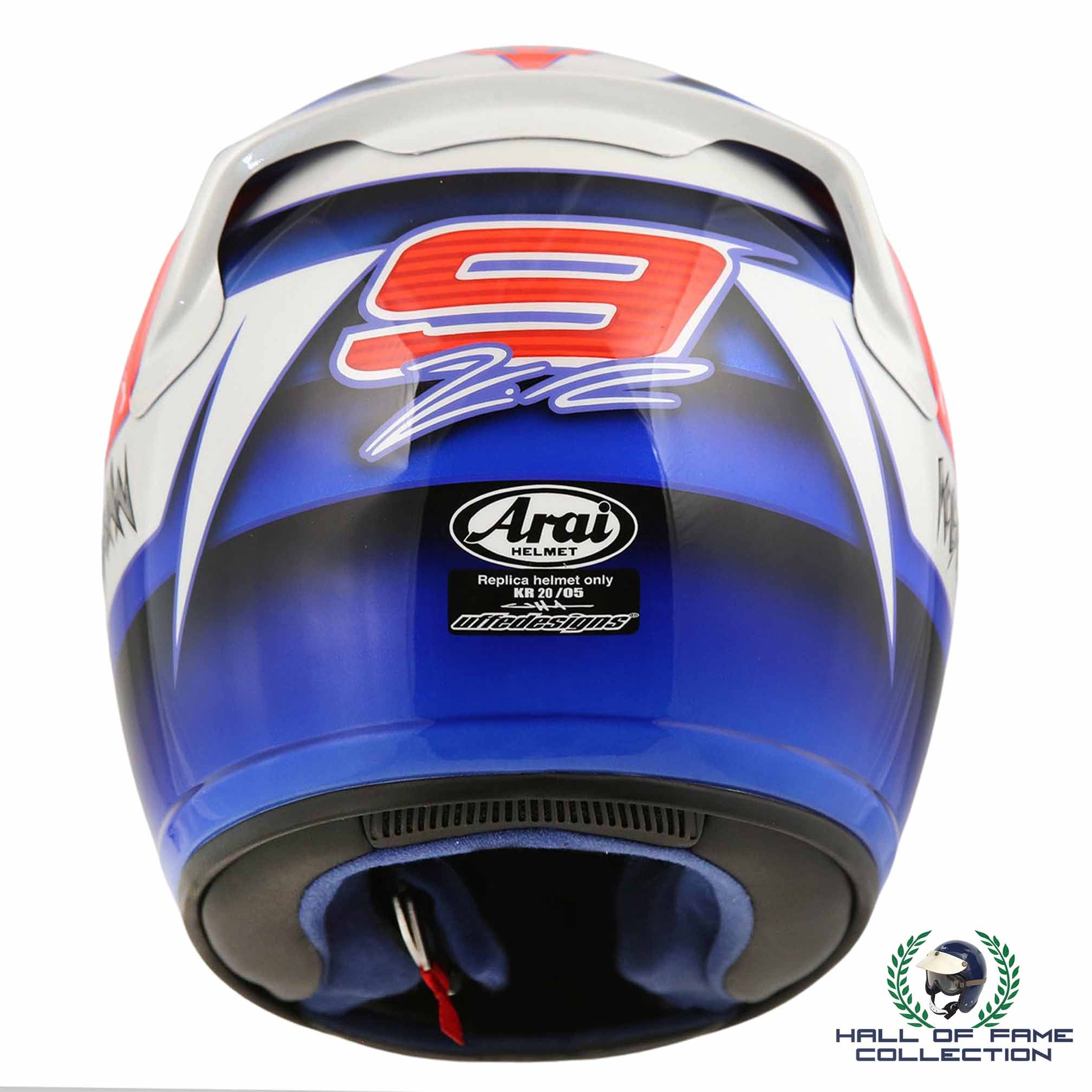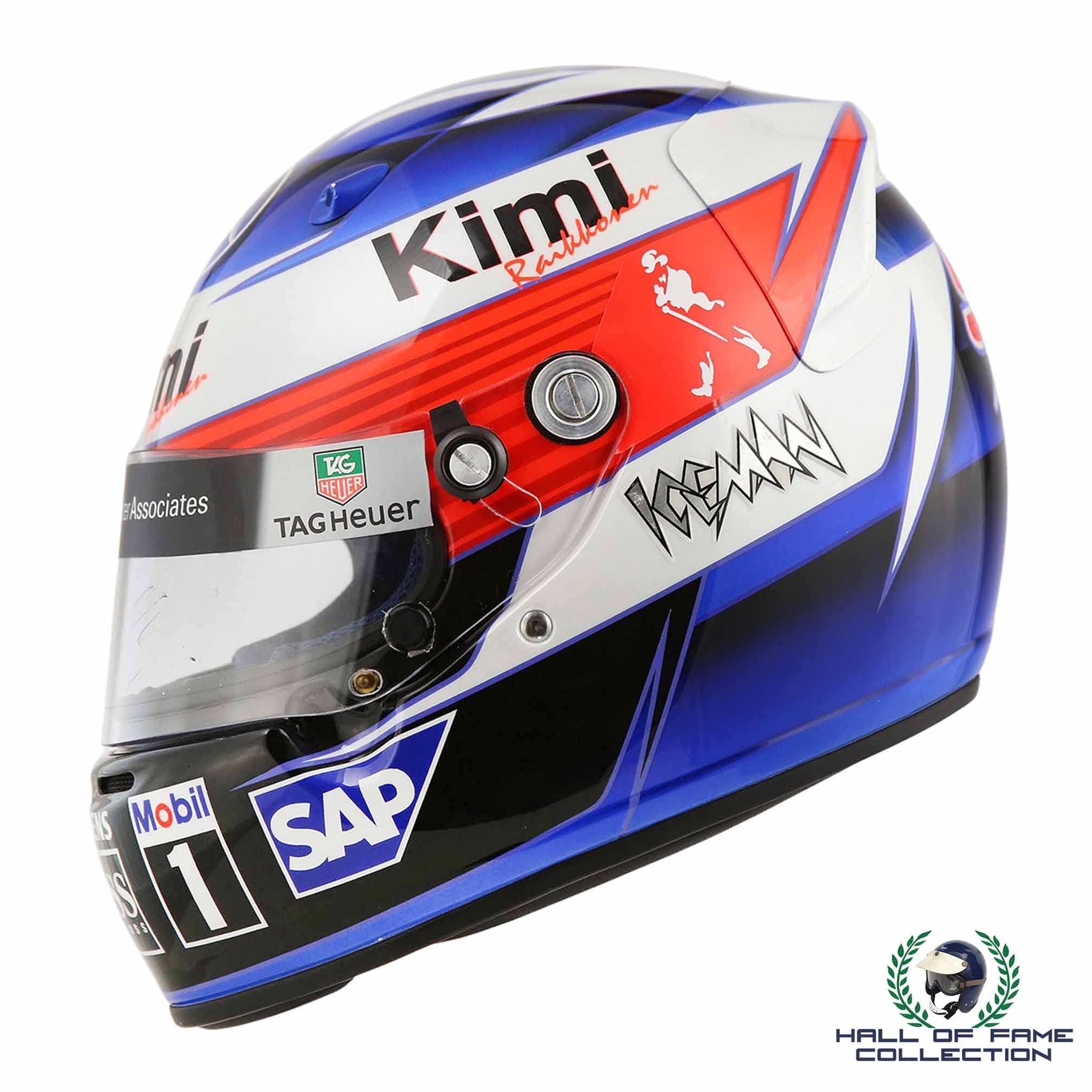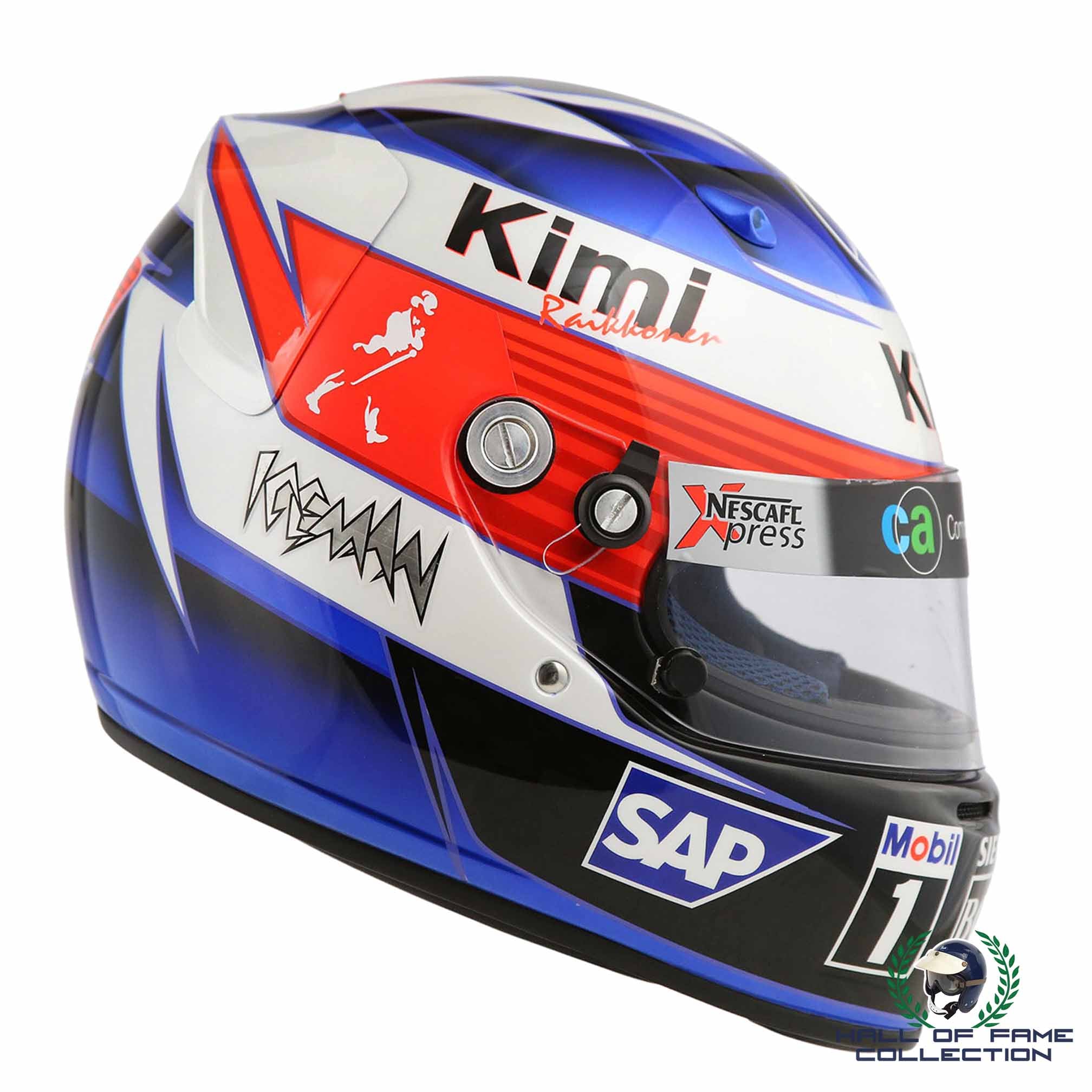 Signed Arai replica of the helmet Kimi Raikkonen wore during the 2005 F1 season while racing for McLaren Mercedes Benz. The helmet is an official limited edition painted by the legendary Uffe Designs the same painter who painted his race helmets.