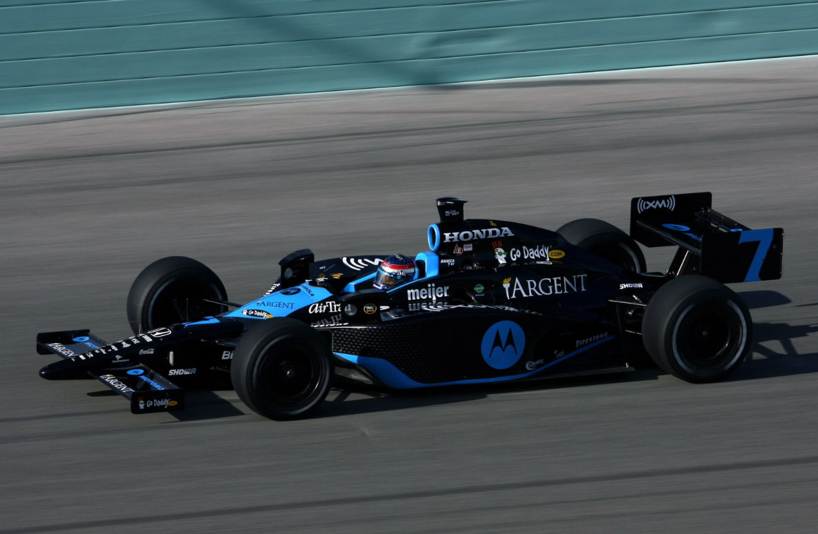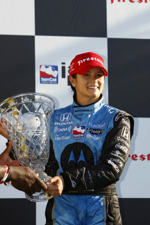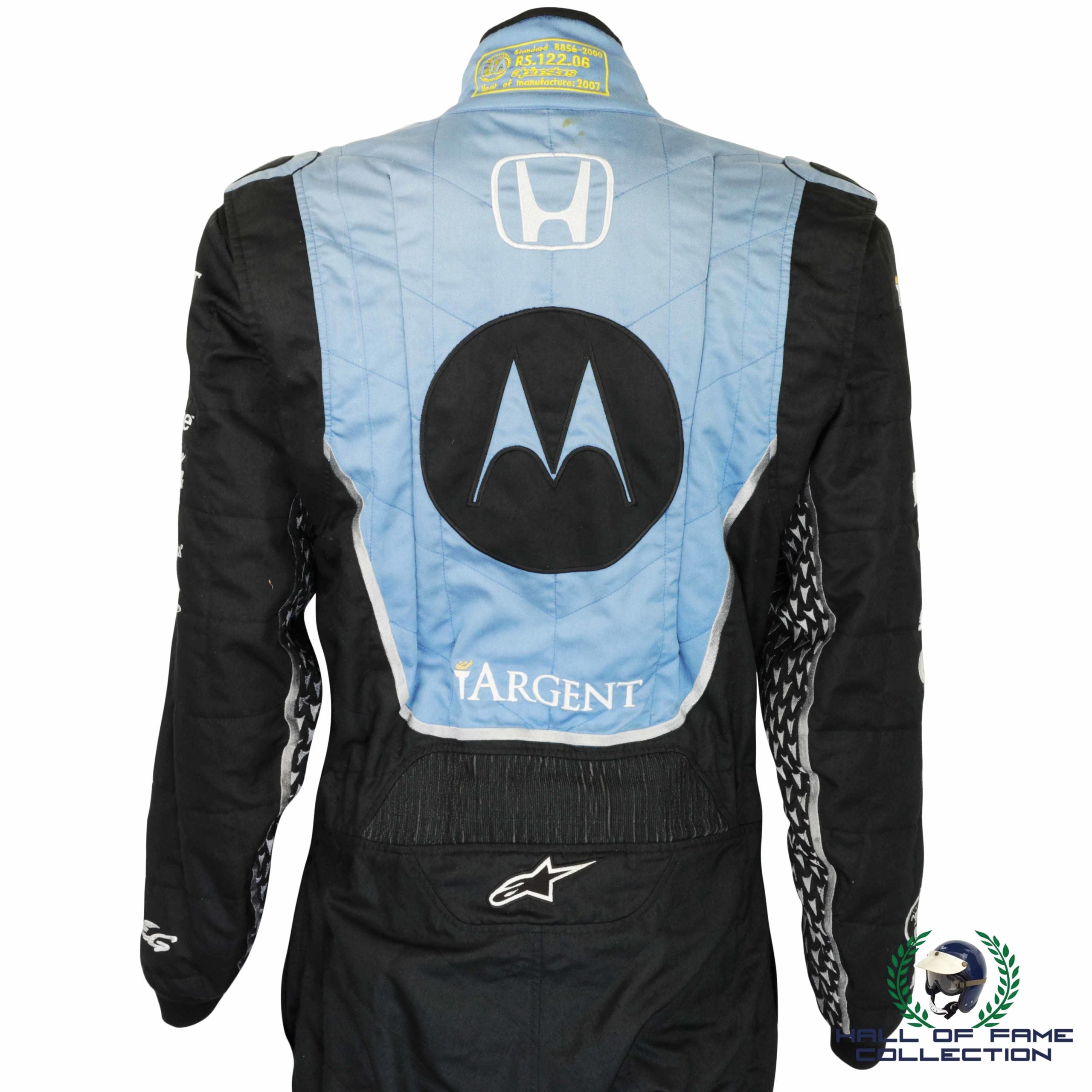 This Alpinestars suit was made for the Andretti Green Racing team in 2007 to promote their star driver Danica Patrick. The American driver is the most successful woman driver in the history of American open-wheel racing. Her victory in the 2008 Indy Japan 300 is the only win by a woman in an IndyCar Series race to date. She is also the first female to ever lead the field at the prestigious Indianapolis 500 race. After seven years in the IndyCar series, she moved across to compete in the NASCAR Monster Energy Cup Series and also ran at the Daytona 24 Hour Sportscar race twice.