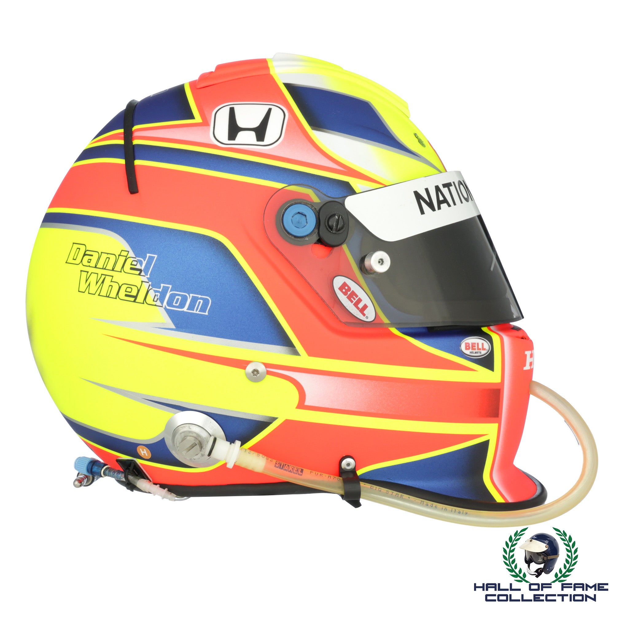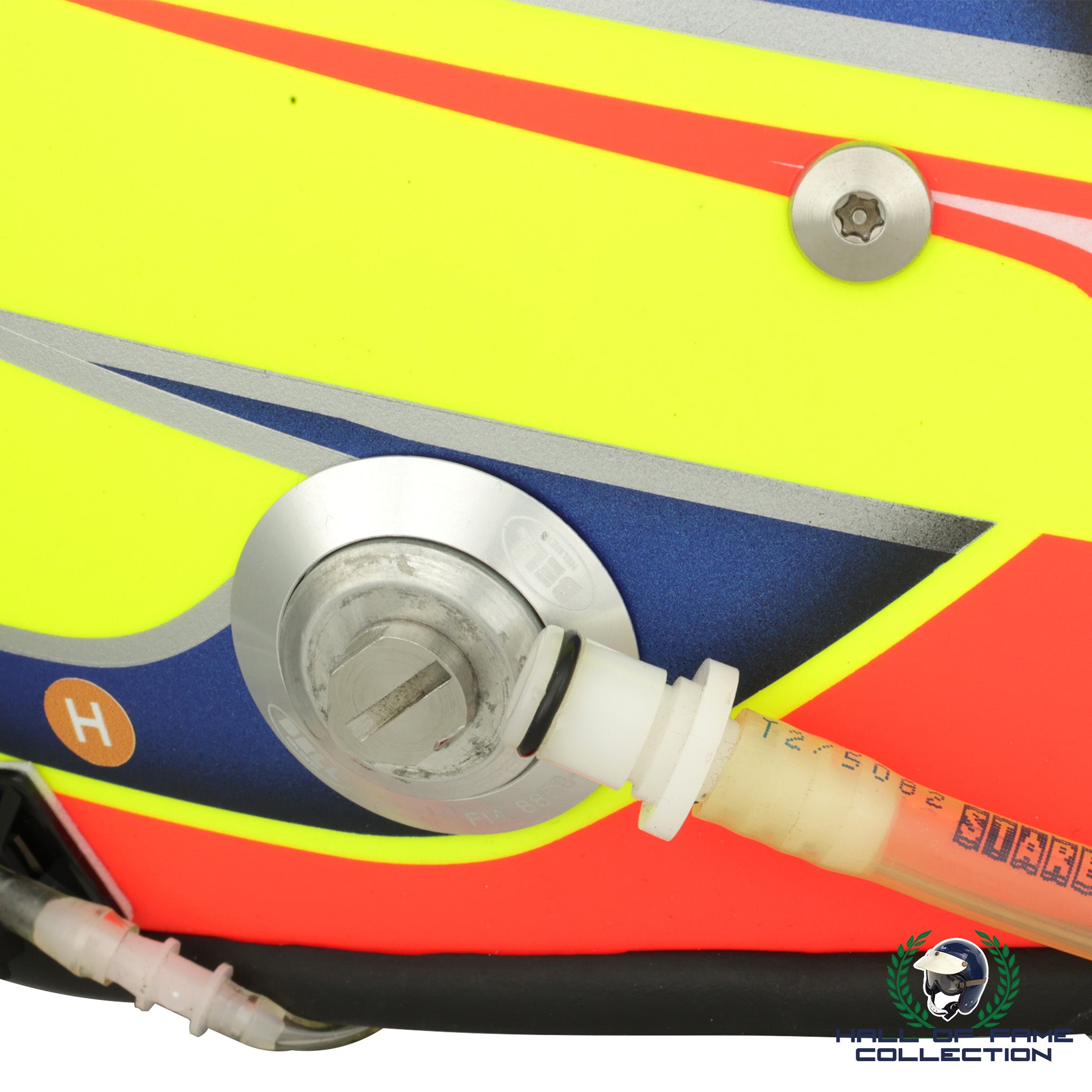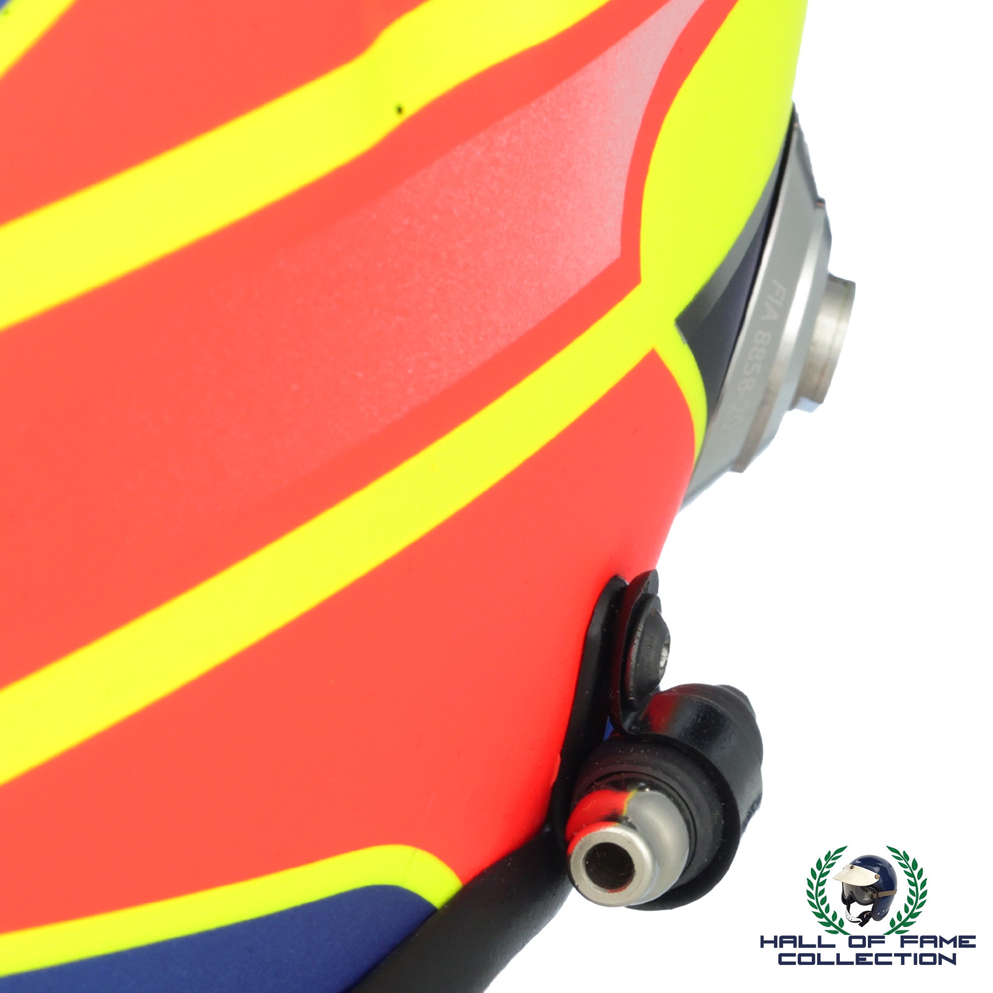 The helmet comes complete with the correct Hans clips and radio attached, and includes a Certificate Of Authenticity.