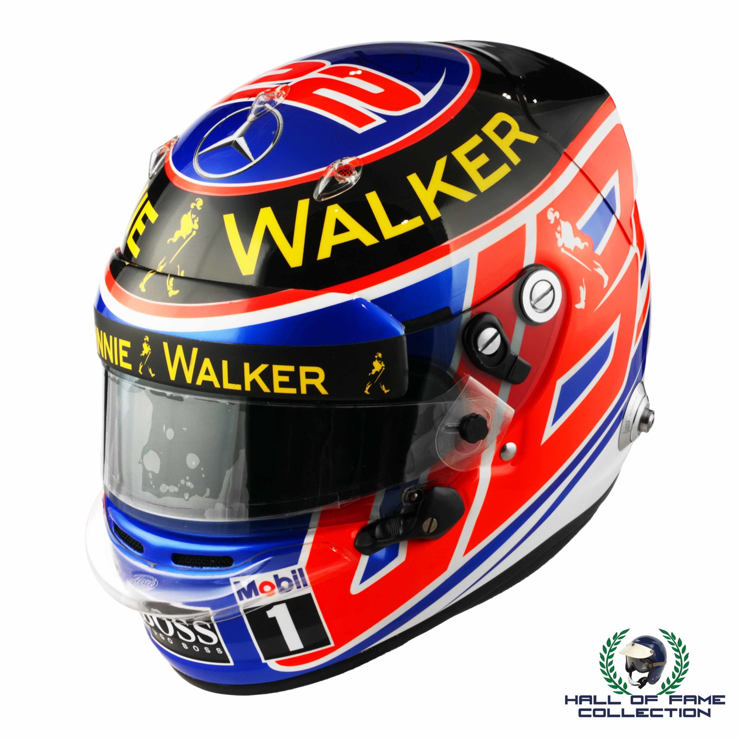 Original race-used Arai GP-6RC helmet worn by the 2009 Formula 1 World Champion Jenson Button during the 2014 F1 season.