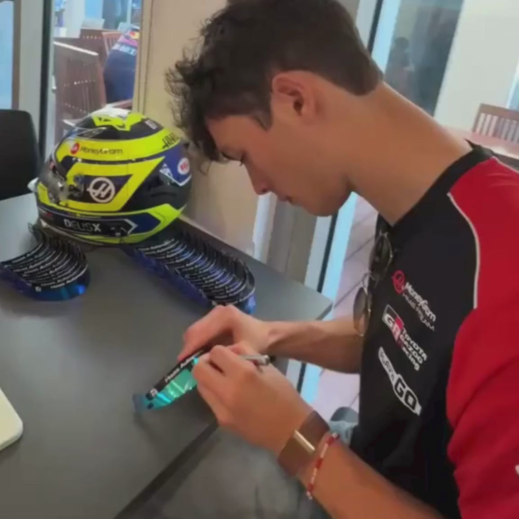 This 1:2 scale Haas F1 helmet features Bearman's 2025 Singapore GP Special design and has been hand signed by Oliver Bearman.