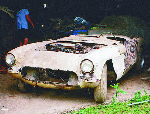 After the car was sold on, its life and whereabouts became largely unknown until we fast forward to 2005, when two Corvette enthusiasts Bill Connell and restorer Joel Lauman were finally able to purchase a rare 1957 racing Corvette that was parked inside a barn on a pig farm outside of Trenton, Ohio. Lauman had been aware of this car’s existence for over thirty years. The two were familiar with the history of the car and its original owner, car dealer and race driver Bill Howe, who had raced the car in 1957. While Connell was convinced that this car was an original ‘Airbox’ Corvette, he and Lauman brought in noted Corvette historian and Chevy V8 fuel injection expert Ken Kayser to inspect the car. Kayser spent two days inspecting the Corvette and checking his research materials, after which he proclaimed that not only was this 1957 Corvette indeed an original “Airbox” Corvette but more importantly it was the first prototype or pilot car of the 43 that were produced. He was able to verify that the car had several prototype part numbers, including the distributor, and several other unique features such as the bracket for the steering column mounted tachometer that in slightly different design would find there way onto the later production RPO579E cars. The engine carried a very early date code of May 2, 1957, marking it as the first 579E spec motor to travel down the assembly line. Following this inspection Lauman’s restoration shop began a very detailed restoration. Restoring the 1957 Corvette to its original glory took over two years and more than 1,500 hours. Fifty years and five months after Bill Howe took delivery of number “4007”, the Corvette restoration was completed and it was immediately invited to be part of the Bloomington Gold Special Collection in 2007. Bill Connell and Joel Lauman commenting on their hog farmer’s barn find compared it to like “finding a Picasso in your attic.”