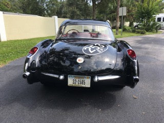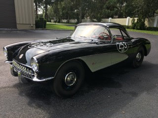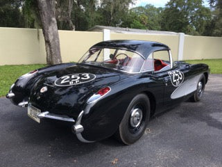The history of this car is well documented. Bill Howe, a Chevrolet dealer and amateur racer, took delivery of the car at the factory in St Louis with the soft top, courtesy light and whitewall tire option; these “frills” however were removed prior to the car’s first race in Cumberland, Maryland. These facts were verified and documented with Jack Knab, Howe’s friend and longtime Corvette racer. Howe only used the car as a racecar. It is then presumed that Howe returned the car to its original ‘factory order’ status to make the car easier to sell off at his dealership at the end of the race season.